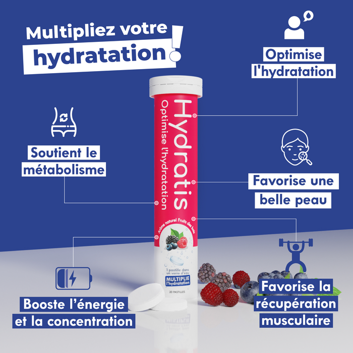 Lorsque vous transpirez, vous perdez les 6 minéraux qui vous permettent d’être performant. Avec Hydratis, combattez la déshydratation, boostez votre énergie et améliorez votre récupération. Vous n’êtes qu’à quelques gouttes de vos meilleures performances.